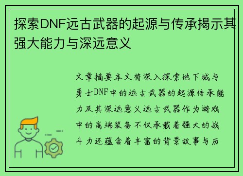 文章摘要:本篇文章从古至今探讨了“战斗之心”的传承与觉醒,重点阐述了英雄精神和不屈意志的历史延续。通过四个方面的详细分析,揭示了这一精神如何跨越历史长河,影响着不同文化、不同时代的英雄人物与集体。在全球历史和文化的背景下,英雄精神始终是推动社会变革与个人奋进的核心力量。从古代史诗中的英雄豪杰,到现代...
